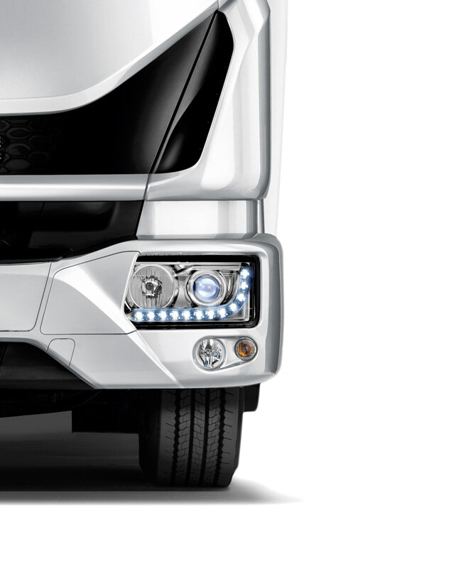 Der Eurocargo ist serienmäßig mit LED-Tagfahrlicht (DRL) ausgestattet, um Fahrsicherheit und Sicht zu verbessern. Xenon-Scheinwerfer sind als zusätzliches Extra sind erhältlich.